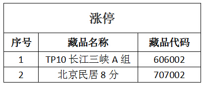 本中心以下上市藏品于2016年1月13日,2016年1月14日,2016年1月15日連續(xù)三個交易日價格漲(跌)停: