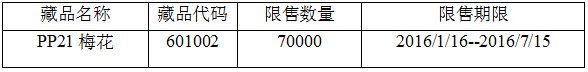 藏品《PP21梅花》主持有人提出部分藏品限售半年的申請,經(jīng)本中心研究決定,同意其限售申請。